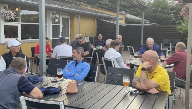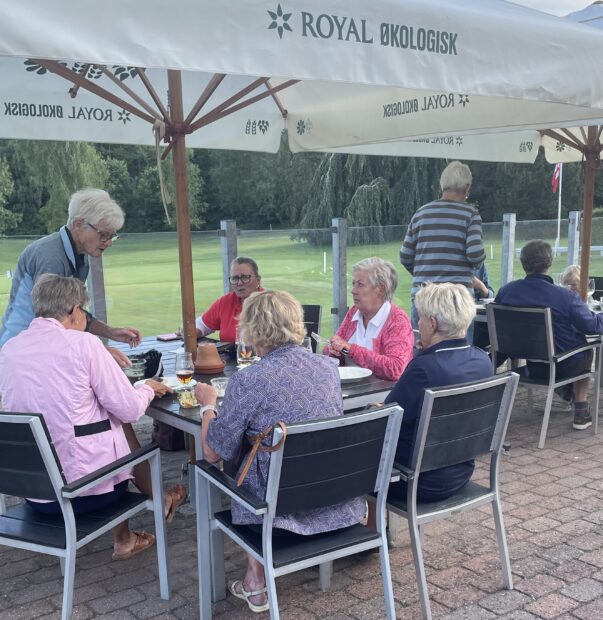 Efter matchen blev der hygget på terrassen mens scorekortene gennemgået, der blev sludret om dagens spil og spist en lækker menu fra café Kilden.