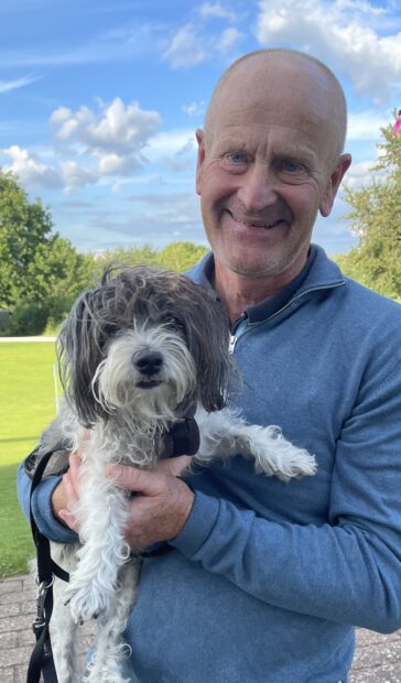 Den 9-årige golfhund, Sally, var selvfølgelig også med igen i år, sammen med John, som de har været de forrige to år. Selvom hun har korte ben, tager hun gerne 18 huller, dog ikke to dage i træk.